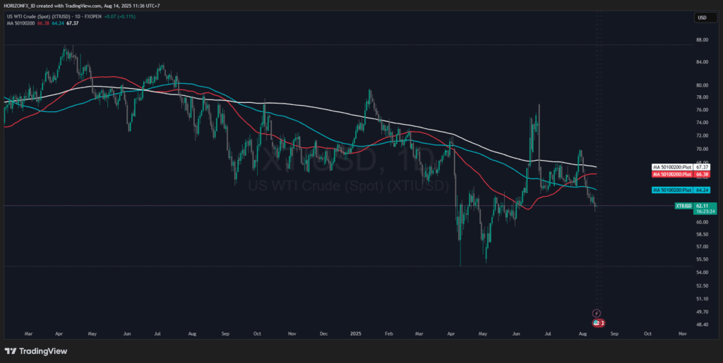 Harga energi memberikan sinyal yang beragam di bulan Juli. Harga minyak mentah West Texas Intermediate (WTI) sempat menguat di awal bulan, diperdagangkan di sekitar $67–69 per barel, didorong oleh permintaan yang kuat. Namun, penguatan Dolar AS sedikit menahan kenaikan lebih lanjut. Secara keseluruhan, kontribusi energi terhadap PPI utama diperkirakan tidak akan signifikan, tidak mendorong naik secara drastis, tetapi juga tidak menekan turun.