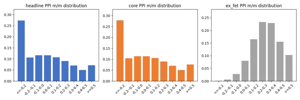 - Pemicu: Data PPI utama (headline) dirilis di antara −0.1% hingga 0.3% m/m. Ini adalah rentang di mana prediksi median kami (0.0%) berada.