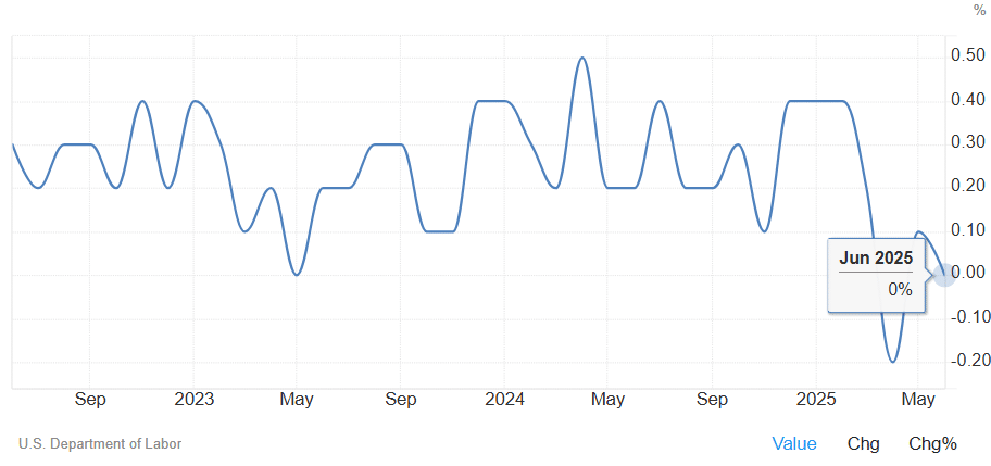 Untuk memahami konteks rilis data hari ini, kita perlu melihat apa yang terjadi bulan lalu. Data PPI Juni 2025 menunjukkan angka utama (headline) yang datar, atau 0.0% secara bulanan (month-over-month). Sekilas, ini adalah berita bagus.