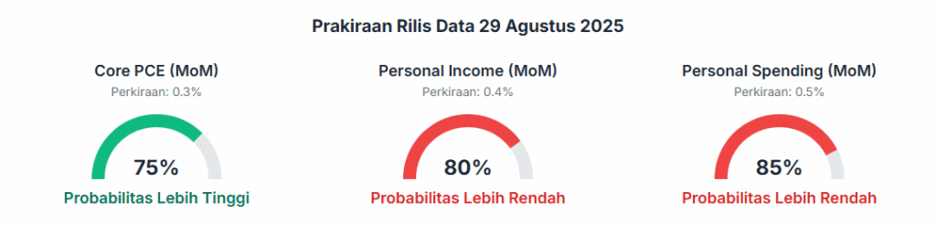 | Indeks Harga PCE Inti (MoM) | 0.3% | 0.3% | Lebih Tinggi | 75% | Lonjakan ekstrem dalam PPI Jasa (+1.1%), dampak rambatan tarif, biaya layanan kesehatan yang lengket. |
