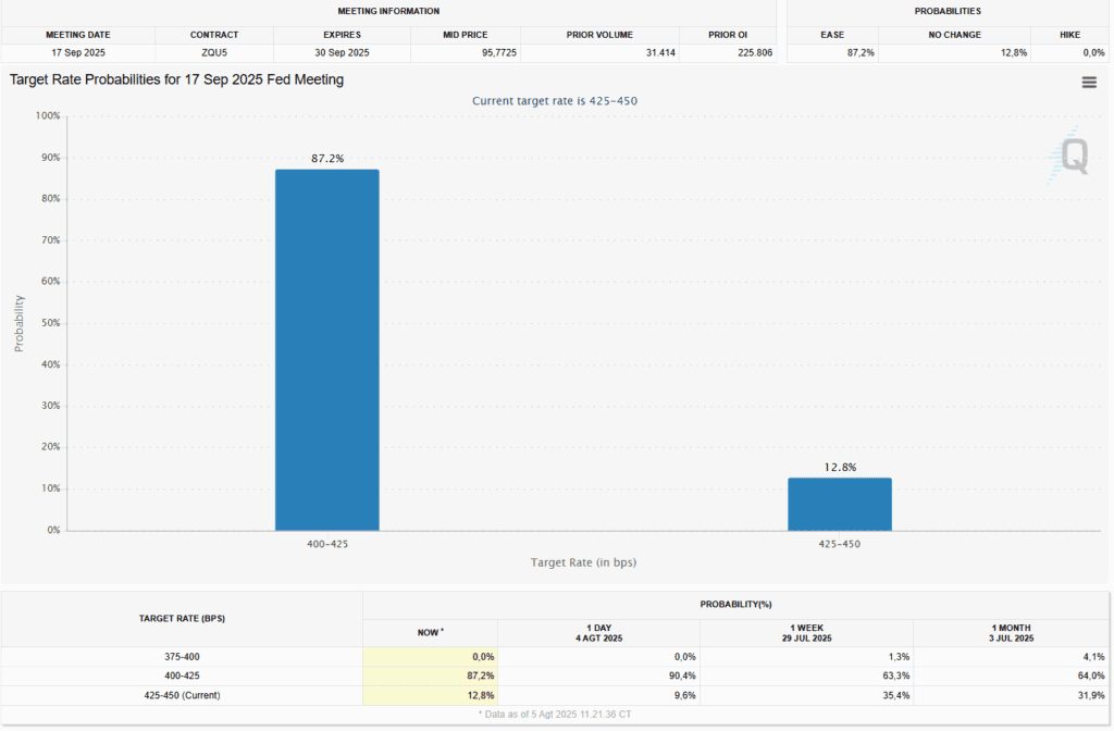 Bagi The Fed, data ketenagakerjaan adalah salah satu indikator terpenting untuk menentukan kebijakan moneter. Laporan yang mengecewakan ini memberikan amunisi kuat bagi para trader untuk bertaruh bahwa The Fed tidak punya pilihan lain selain memangkas biaya pinjaman guna menstimulasi pertumbuhan ekonomi dan mencegah resesi. Alat yang digunakan para trader, seperti CME FedWatch Tool, menunjukkan probabilitas yang hampir pasti bahwa The Fed akan memangkas suku bunga pada pertemuan berikutnya di bulan September.