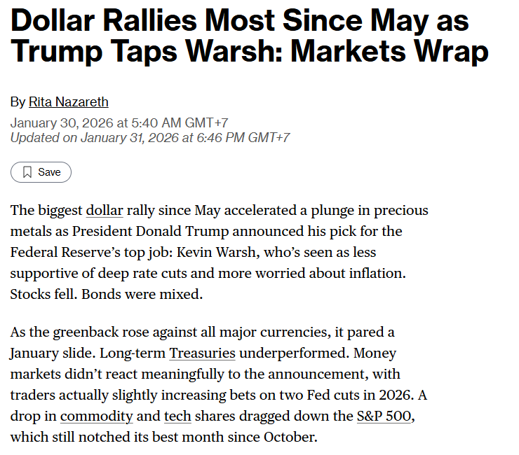 Konsensus pasar ritel bersifat linear dan sederhana: “Warsh dipilih Trump -> Trump mau pasar saham naik -> Warsh pangkas bunga -> Saham naik.”