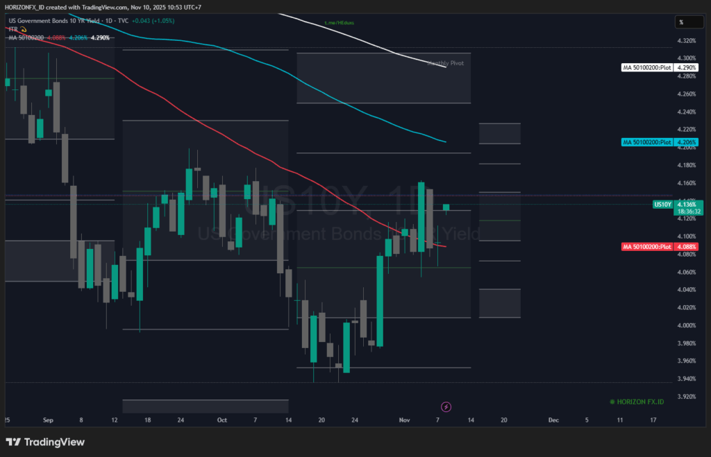 - Stres Fiskal Berlanjut: Pemerintah AS terus mengeluarkan utang besar-besaran untuk mendanai defisitnya (yang diperburuk oleh anggaran sementara pasca-shutdown).